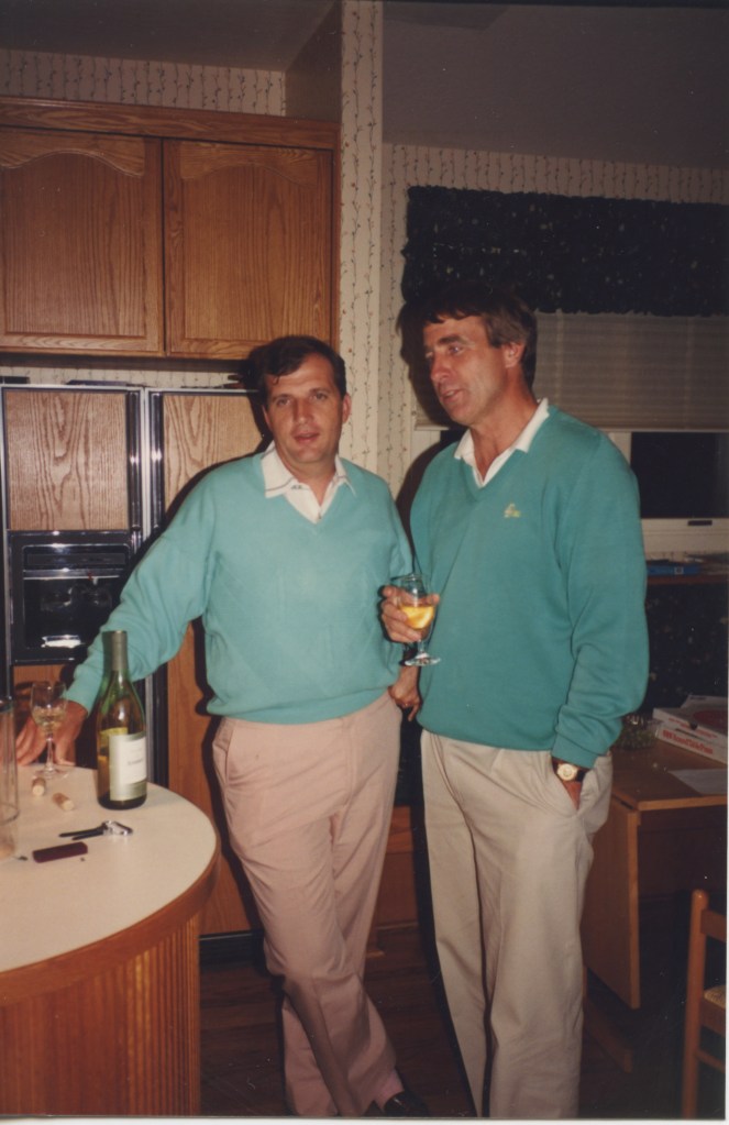 Once in Scotland after 36 holes and heavy dinner and drinks we were exhausted and went to the rooms about 11pm. We got a call about midnight from our trip leader about a “come as you are NOW putting contest“ on the hotels 4 th floor overlooking the entry way. Marty came in his fancy Tommy John underpants ONLY with his putter several made Marty look over dressed. Everyone’s first putt missed the hole and several balls rolled past the hole and went loudly down the four flights of stairs bouncing off the walls and windows reaching the main lobby. The Scottish owner in a kilt and his sheep dog came up the stairs to see this sight. The sheep dog had Marty’s golf ball in his mouth. The owner asked us to check out in the morning. In the morning as the bus driver was loading unexpectedly our bags onto the bus WITH THE OWNER AT ATTENTION NEXT TO THE BUS Marty shook his hand and told the owner he would ship him the finest bottled water in the USA , Black Mountain, for a year. The owner was smiling when we left. Of course when you, we , us received bottled water at our house after an evening with Marty we knew this apology was from his heart but most of the time we never remembered the incident.